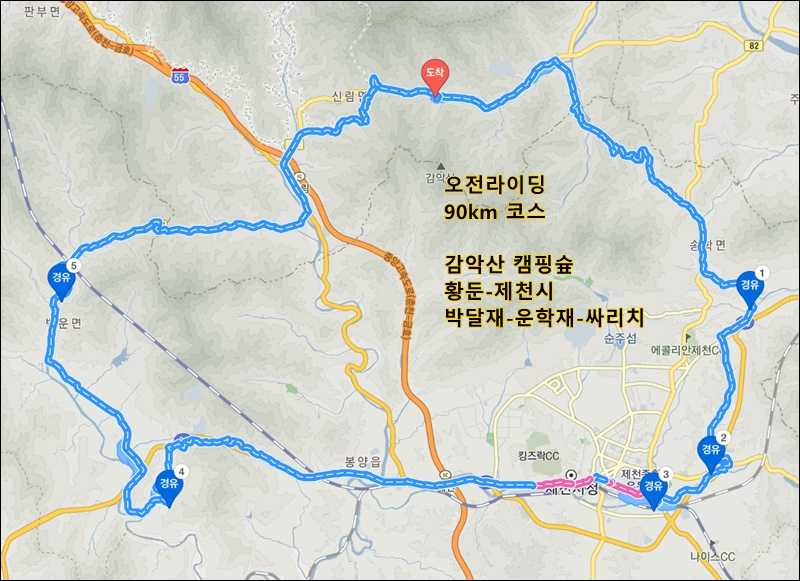 캠핑장에서 300미터 정도 떨어진 곳에 있는 원주산악자전거 파크