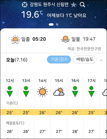 소나기 예보가 있다.