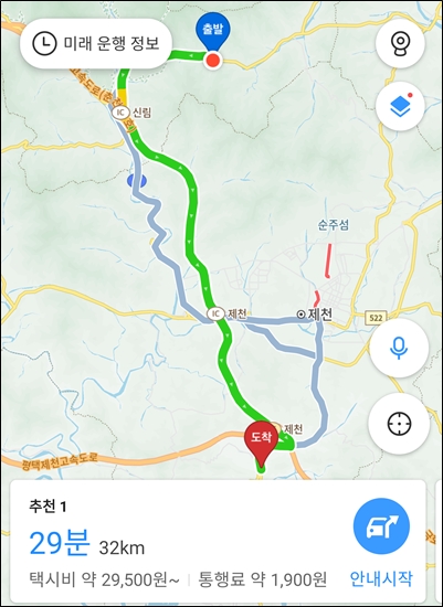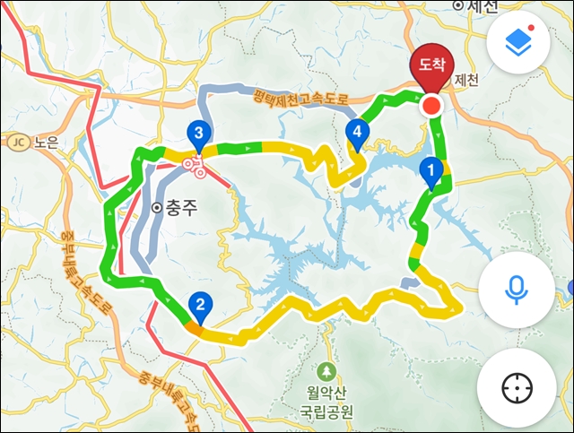 금성~청풍대교 차량 꽤 많았음.