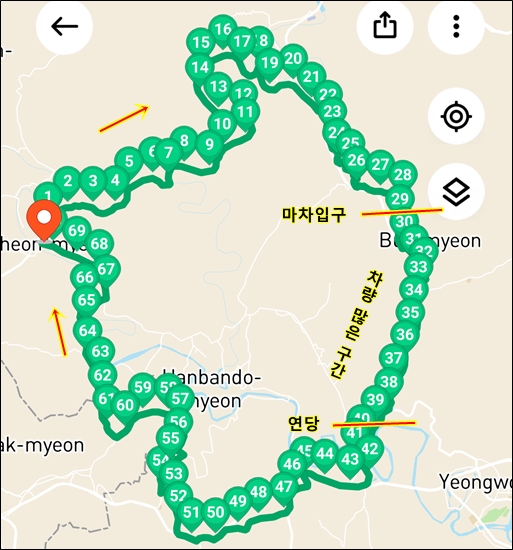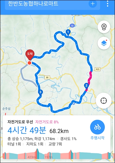 지난번 두 번의 라이딩에서는 국도변만 통과