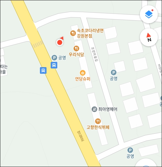 쌍용 C&E 앞에 국도를 중심으로 한 곳에 또 마을이 있다.