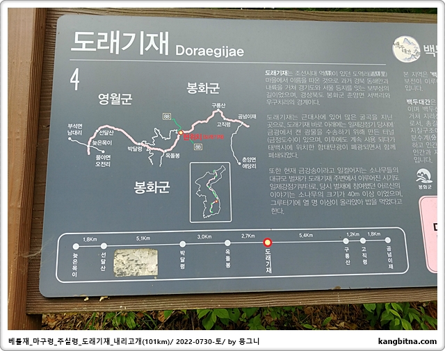 영춘-베틀재-의평-마구령-부석-물야-주실령-백두대간수목원-도래기재-내리고개-김삿갓면-영춘