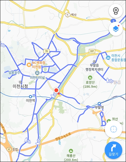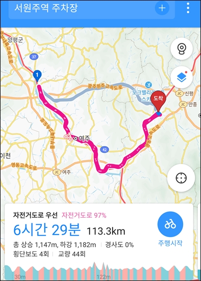 복하교~부발 구간 교통량이 많지만 인도 부분에 자전거 도로 확보되어 있음.