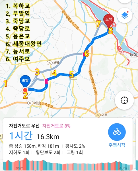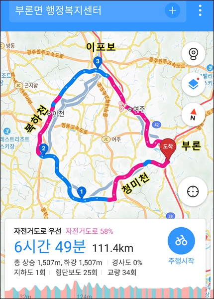 복하교에서 부발을 거쳐 여주보로 돌아가기로 결정