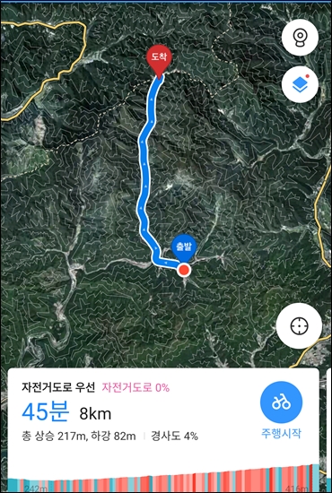 갑천에서 올라가는 율동임도는 자전거가 다닐만한 길은 아니다.