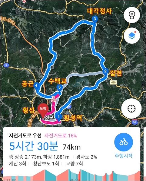 아니면 처음부터 횡성댐 지나서 병지밥으로