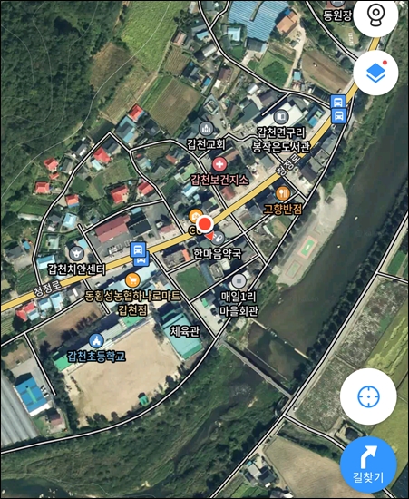 원래 면소재지는 수몰되었고, 새로 옮겨 조성하여 깨끗하다.