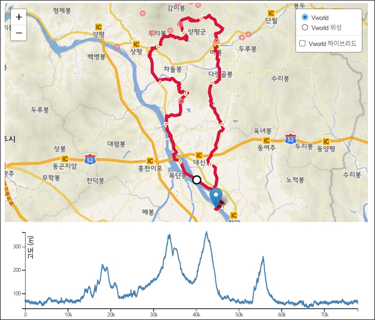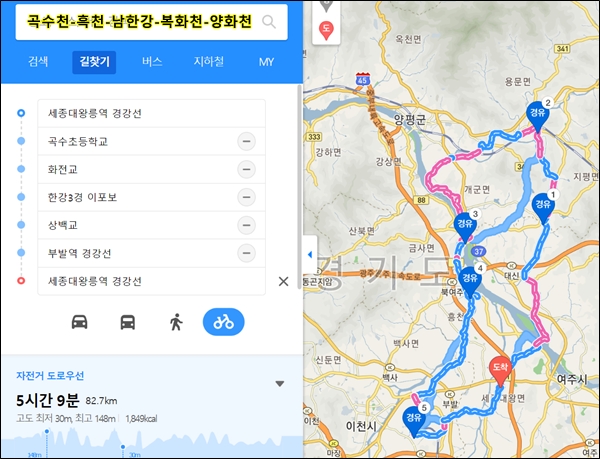 지도 찾아보니 남한강부터 곡수천을 따라 달리면 됨