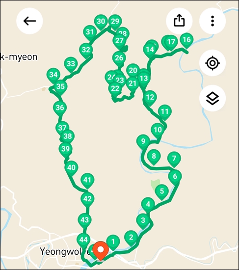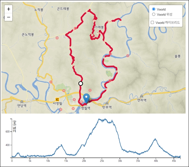 능선에서 전화기 터져서 gpx보니