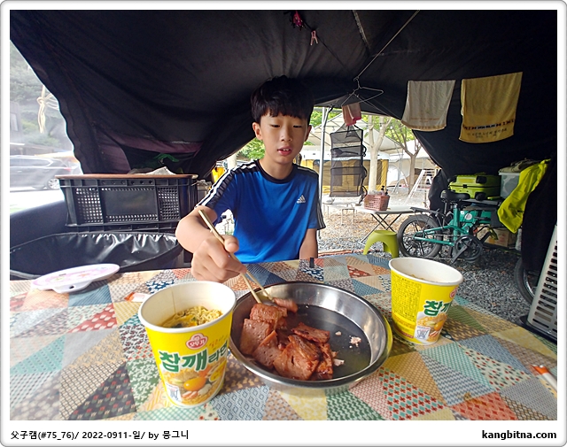 일요일 아침 참깨라면과 스팸으로 아침식사