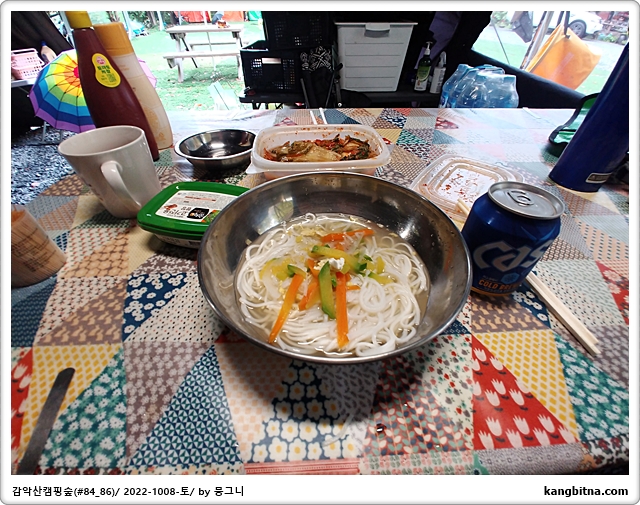 캠핑장으로 돌아와서 잔치국수와 맥주