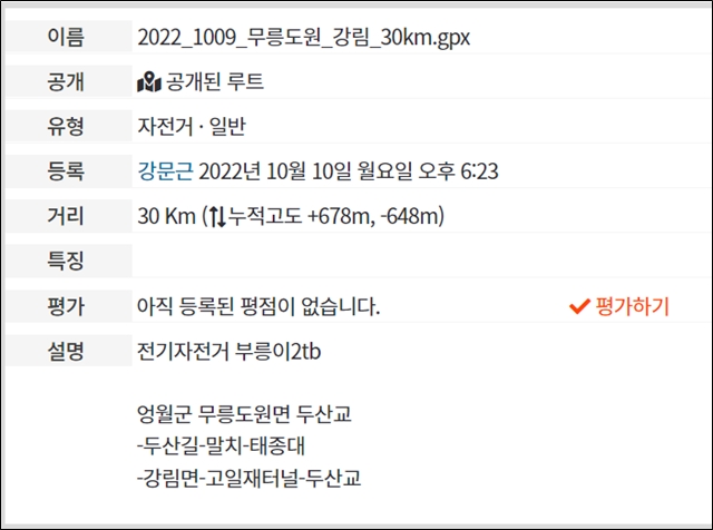 | [2tb][2022-1008-토] 서원주-용문-남한강(118km) (0) | 2022.10.10 |