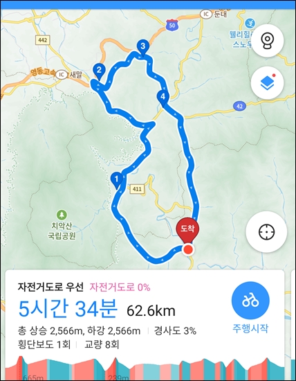 거리는 길지 않지만 고개를 4개 넘는 코스