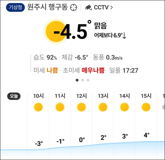 일요일 아침 다시 추워짐