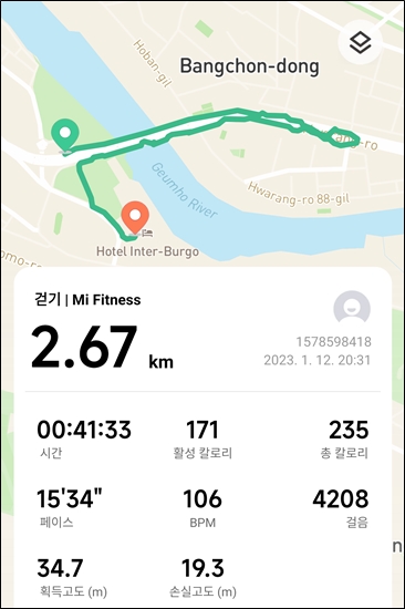 다리 건너서 첫번째 육교까지 가서 다시 길을 건너 돌아왔다.