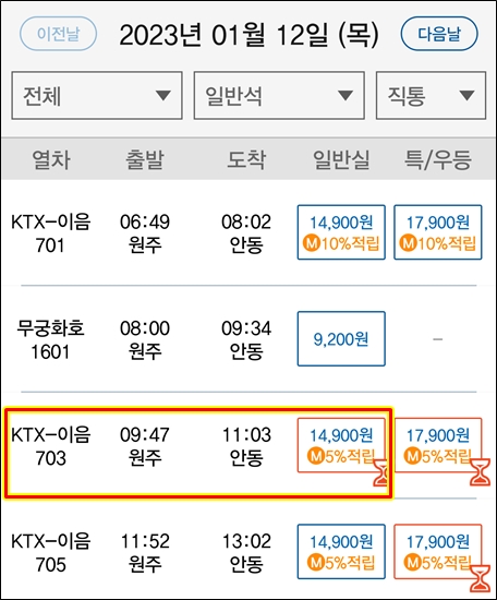 8시 무궁화호 예약했다가