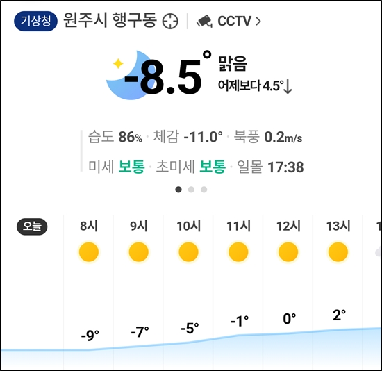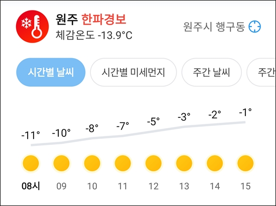 토요일 아침 다시 엄청나게 추워짐