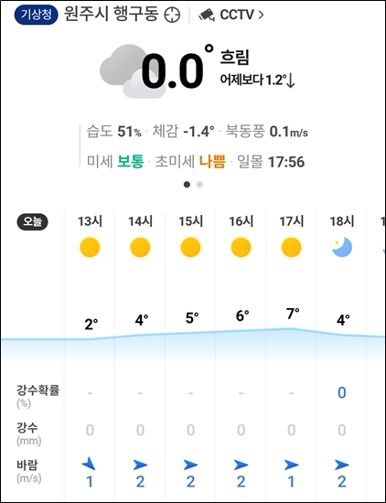 오후로 갈수록 다시 기온이 떨어짐
