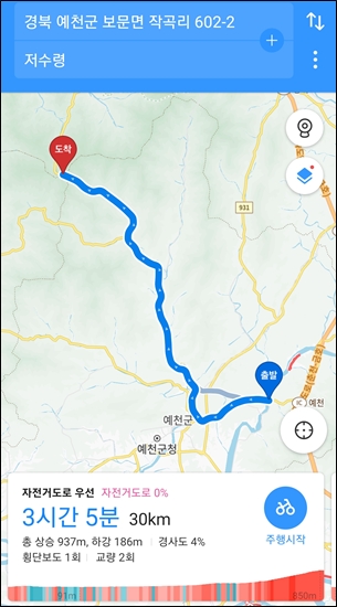 저수령 업힐 시작