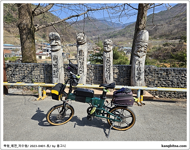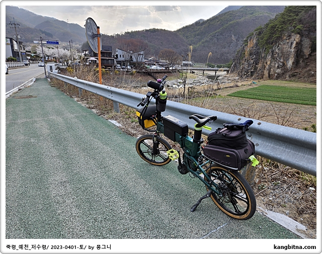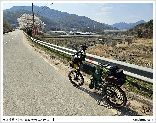 오늘의 코스 단양 대강면-저수령-예천읍-양궁로-내성천-영주 무섬마을-서천-영주-풍기-죽령-단양 대강면 121km 계획 일기예보는 흐림이었지만 아침에는 조금 쌀쌀했고, 오전 11시부터는 뜨거운 햇