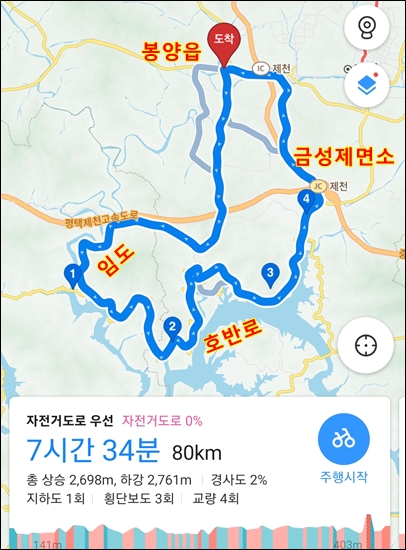 주변에서 라이딩 하기로 코스 변경