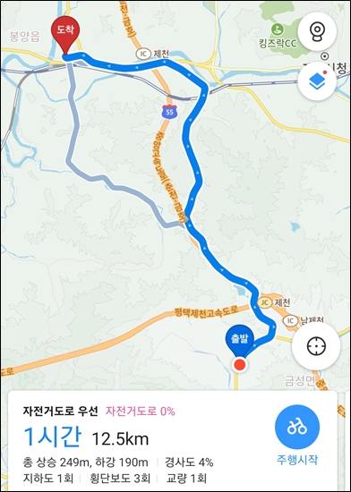 9시 10분 봉양읍 행정복지센터에 주차하고 출발