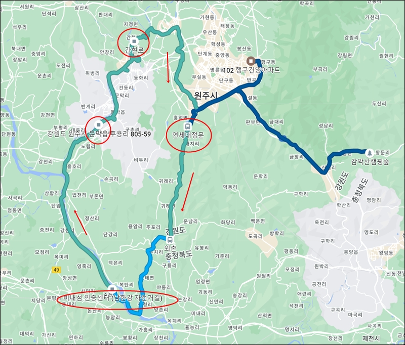 다음번엔 매지리 출발하여 거돈사지-법천사지-흥법사지 코스로 100km 만들어 봐야겠다.
