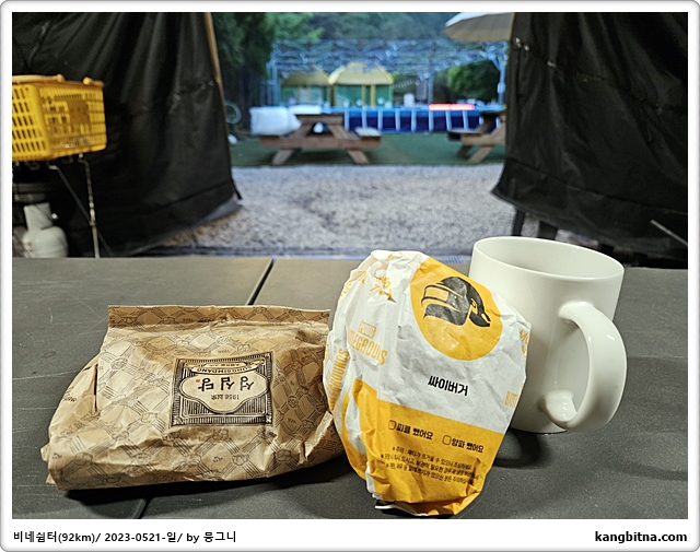 자전거를 눈으로 지켜볼 수가 있어서 편안하게 먹을 수 있는 장점이 있다.