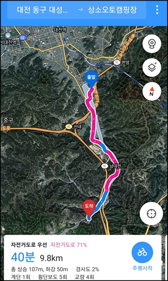 상소캠핑장까지 대전천을 따라서 편도 10KM 정도