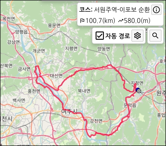 계획 수정... 자이언트로 자도따라서 서원주-이포보 왕복 100km 예정