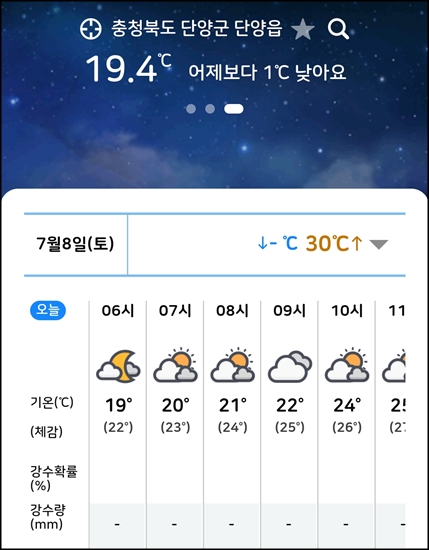 일기예보는 단양 맑음