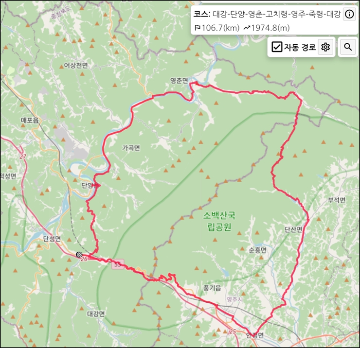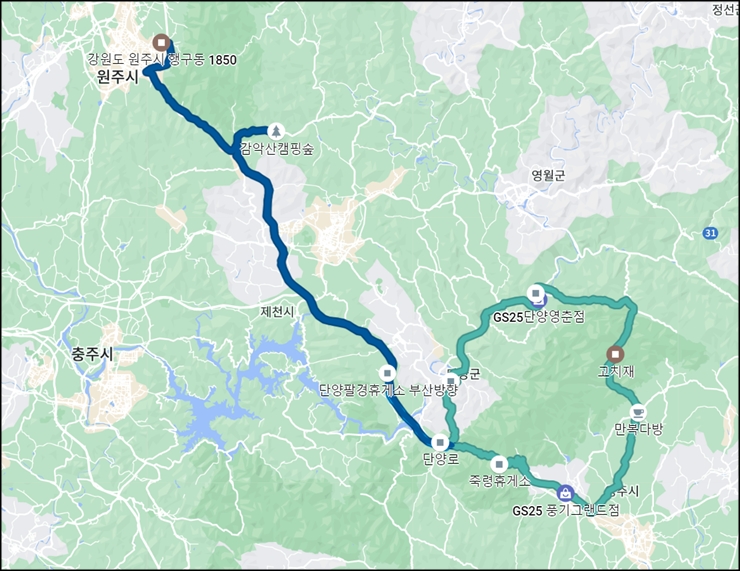 고치령과 죽령을 넘는 코스