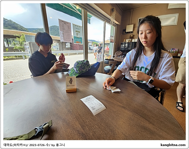 히타카츠에서 음료수 한 잔씩 마시며 시간 보내기...