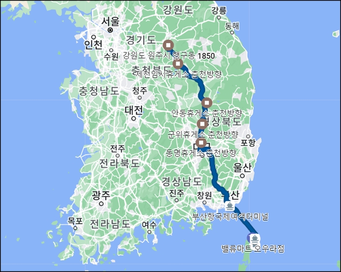 동대구에서 공사로 지체 안내를 보고 청도 휴게소에 들리지 않고 계속 달림.