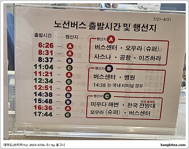 a) 오갈 때 밸류마켓 오우라점 들릴 수 있음(쓰시 도식락 강추)