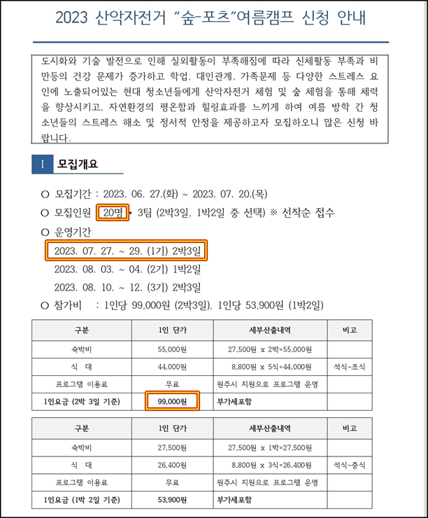 강바다 학교 게시판에 공지된 숲-포츠 참가하고 싶다고해서 신청