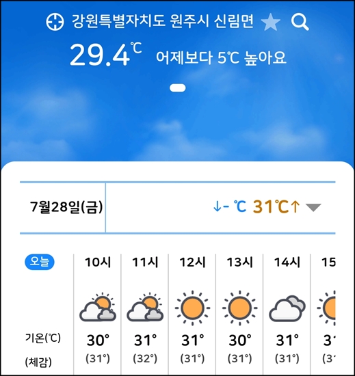 조금 기다렸다가 늦게 출발하여 폭염으로 더위 먹었다.
