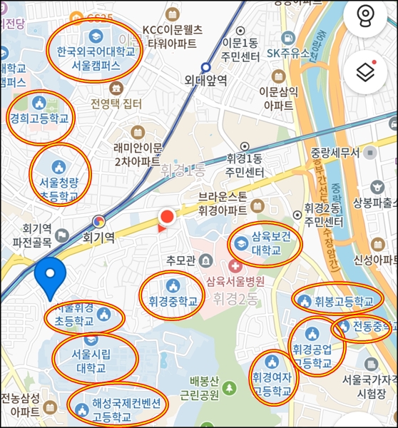 회기역 주변에 학교들이 정말 많다.