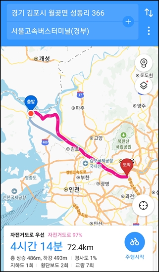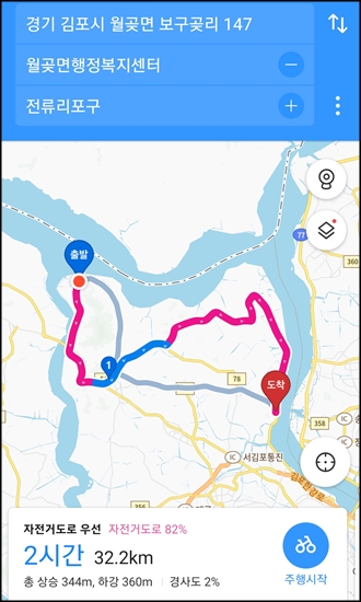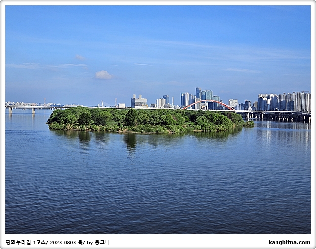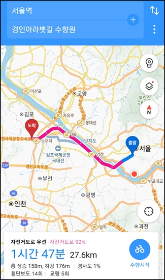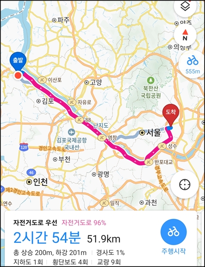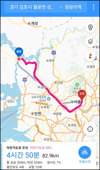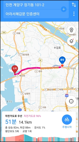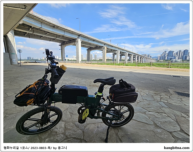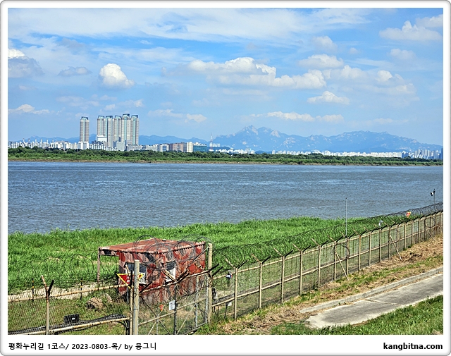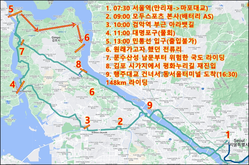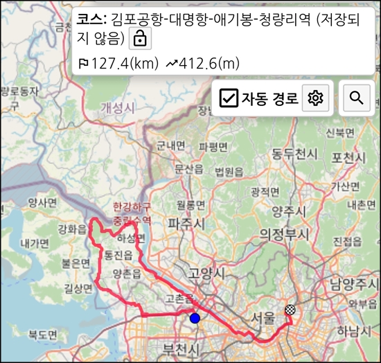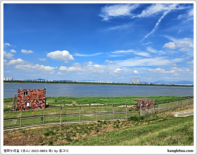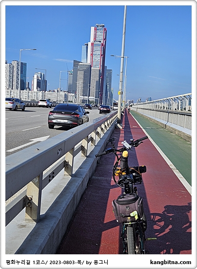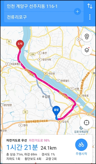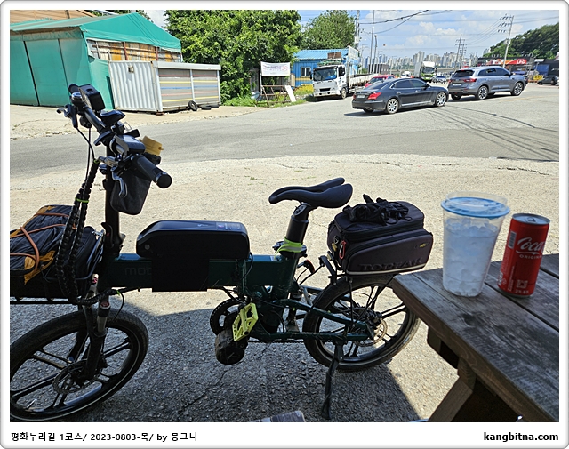 콜라 한 잔 마시고 김포시가지 직전에 한강변 자전거 도로로 진입