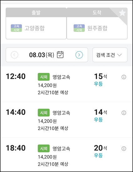 동서울터미널이 생각나서 검색해 보니 예약 가능