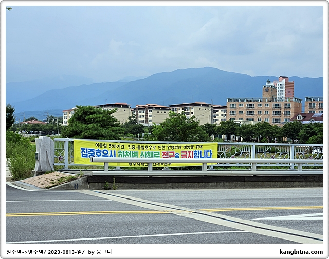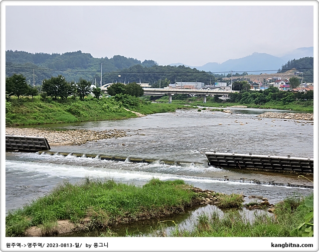 풍기와 영주의 서천은 완전히 둔치가 물에 잠긴 듯