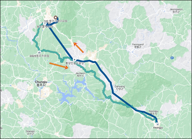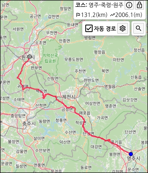 그래서 영주->원주 코스보다 원주->영주 코스 선택