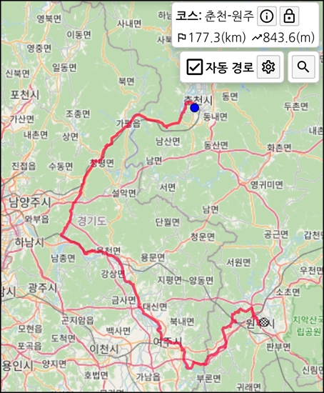 원주까지 북한강, 남한강, 섬강을 거쳐서 오는 장거리 라이딩 계획