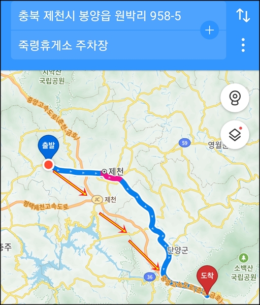 파스5로 30분 걸려서 죽령 도착