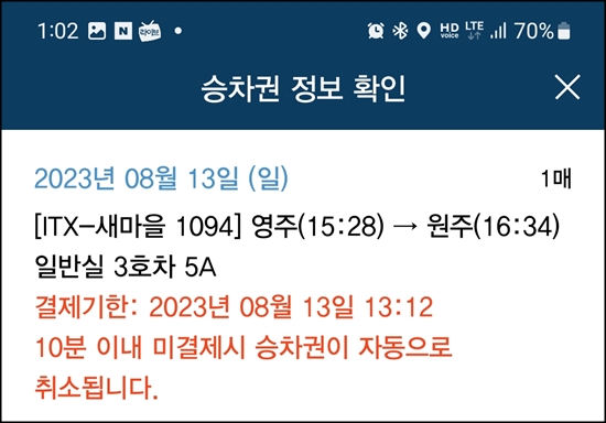 새마을호 타고 원주역으로 돌아옴