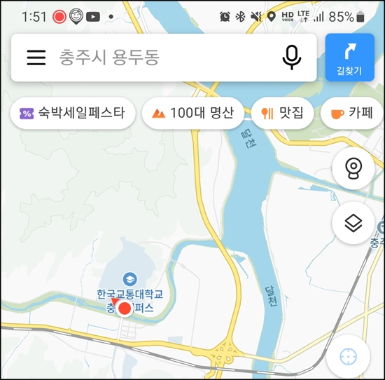 뒤에 보이는 목행교에서 충주시내로 들어올 수도 있고
