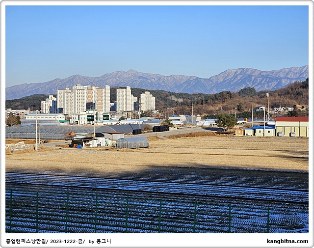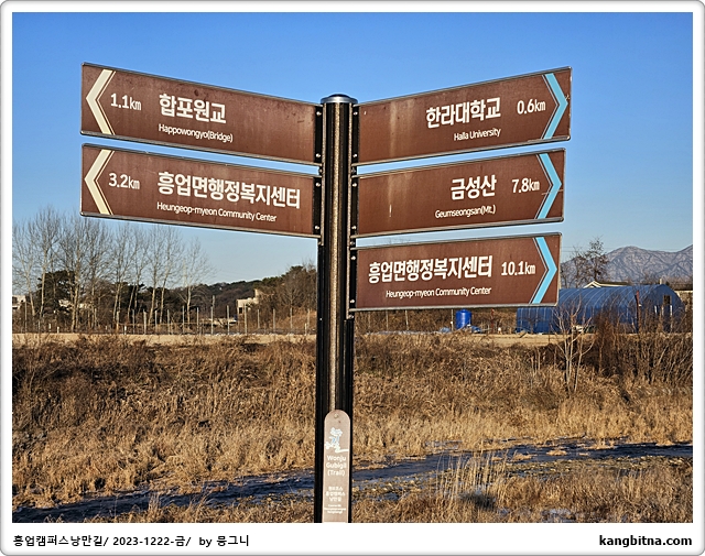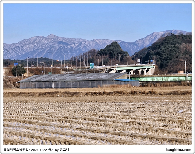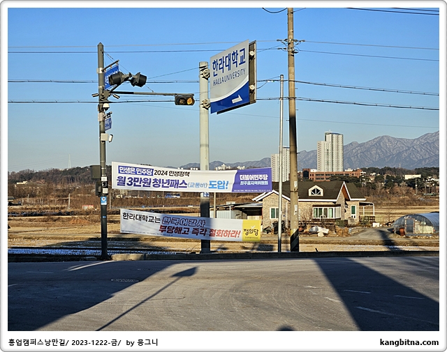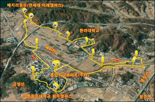 여기서부터 산과 들이 만나는 곳에 만들어진 도로를 따라 한라대학교로 간다.