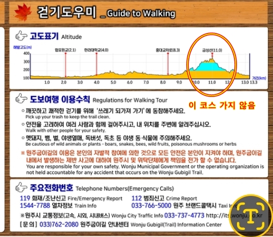 지도에서는 시계반대방향 걷기를 안내하고 있지만