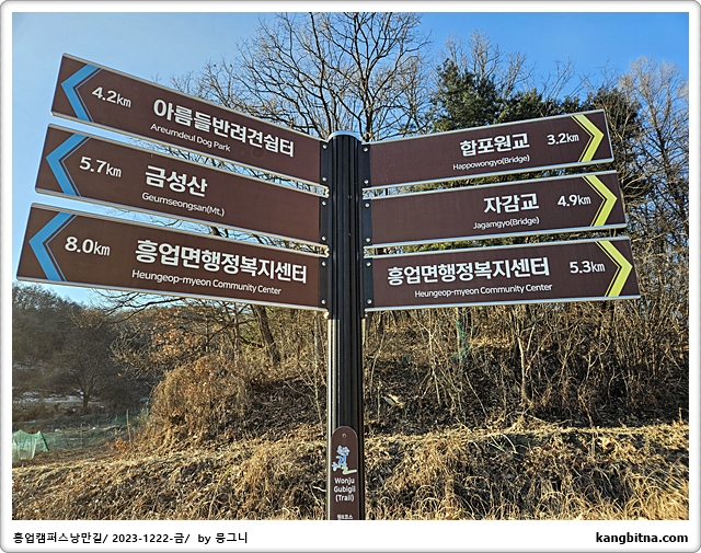 금룡을 조금 지나자 원주굽이길 표지판 만남