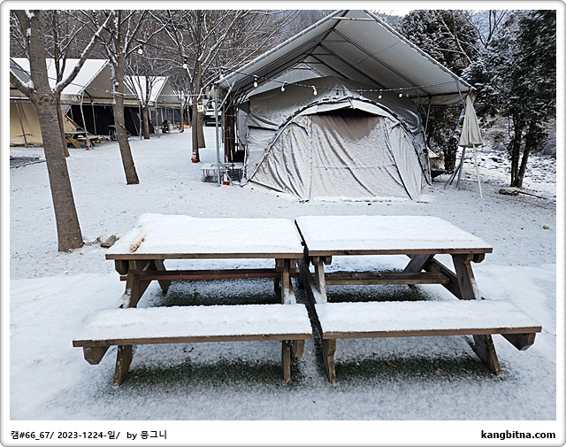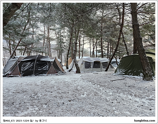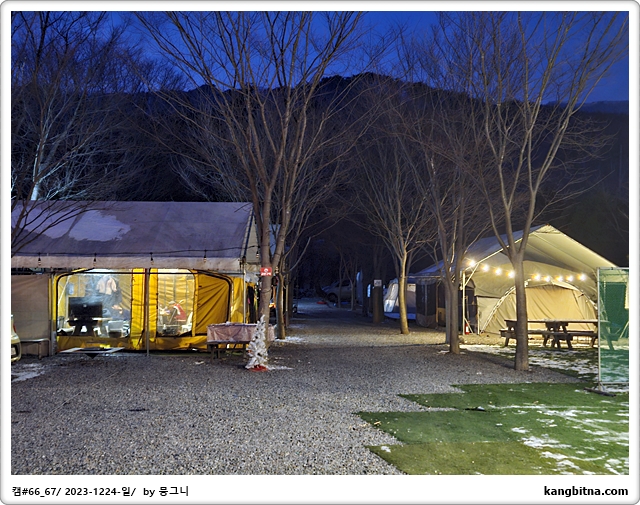 크리스마스 행사(산타크로스 오셨네)를 하러 온 주말캠퍼들로 만석 수준의 캠핑장